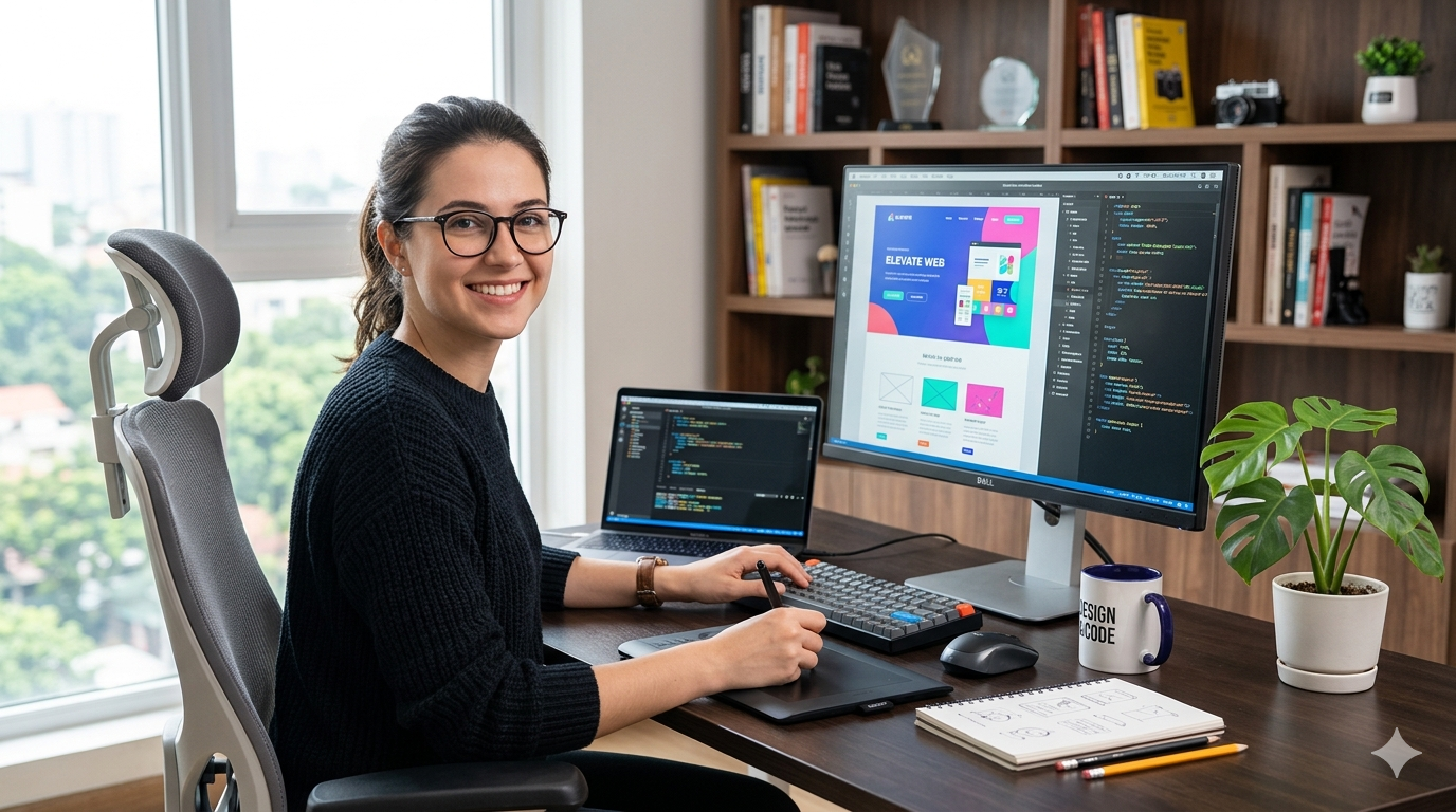 Dizajnira izgled stranica, bira boje, slike i raspored elemenata.